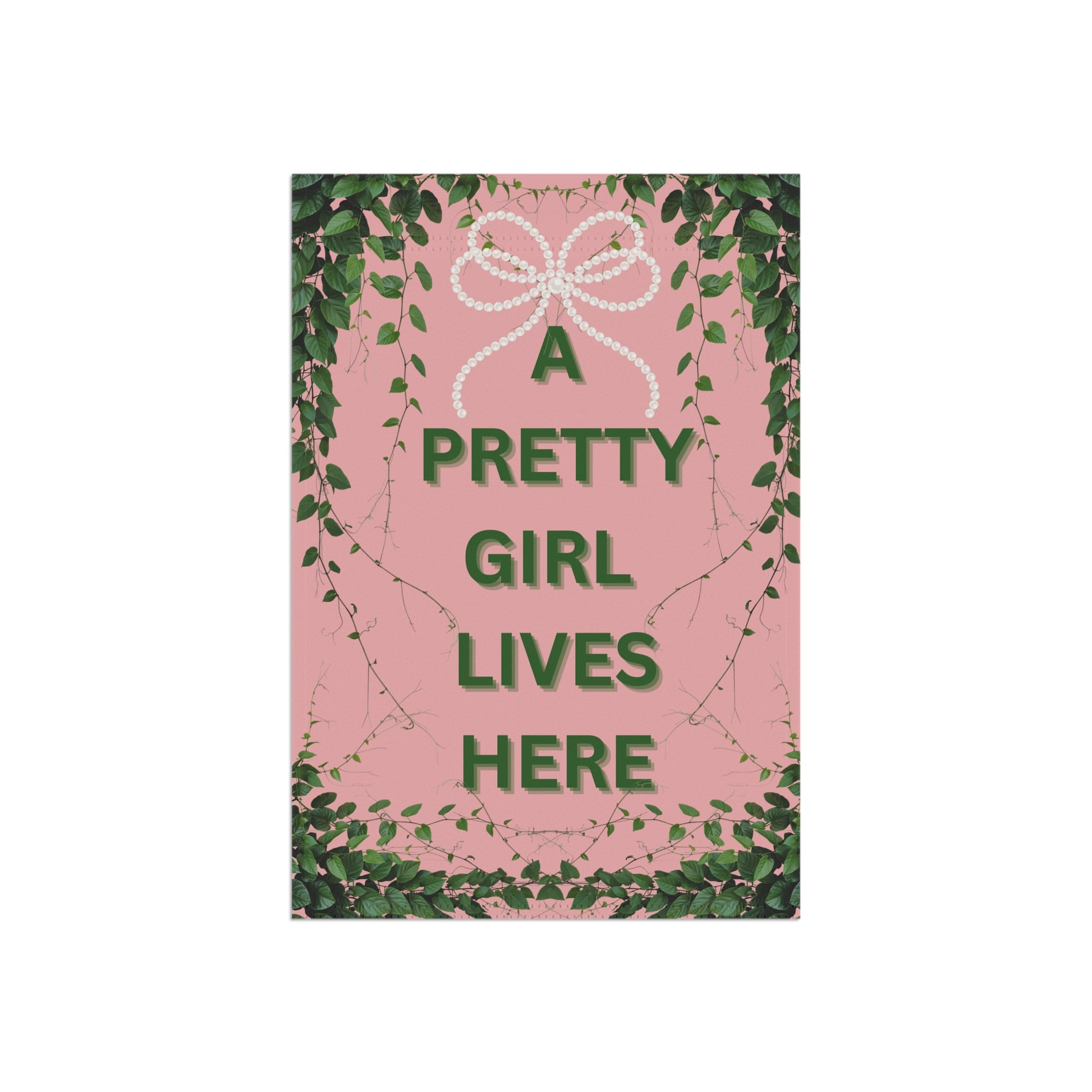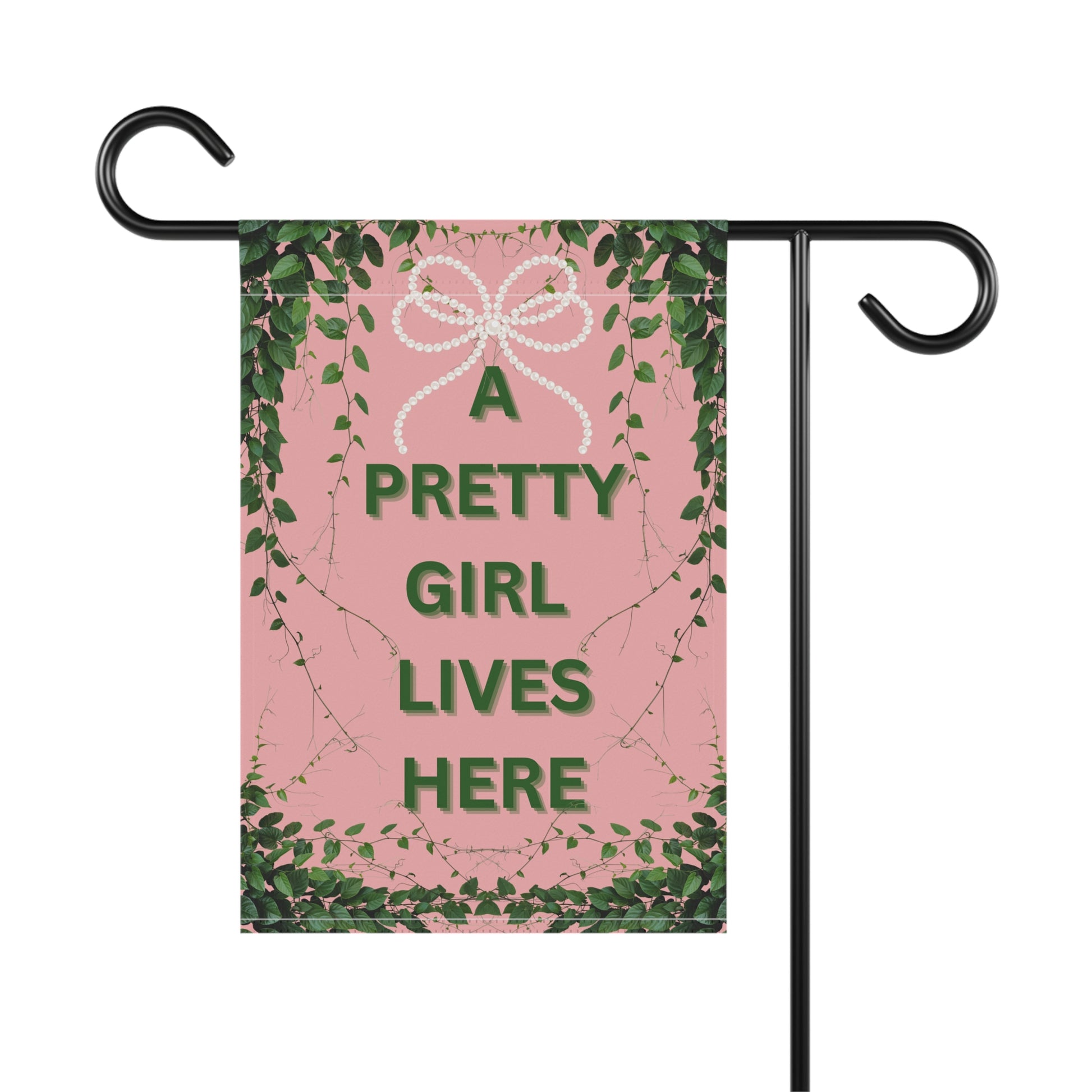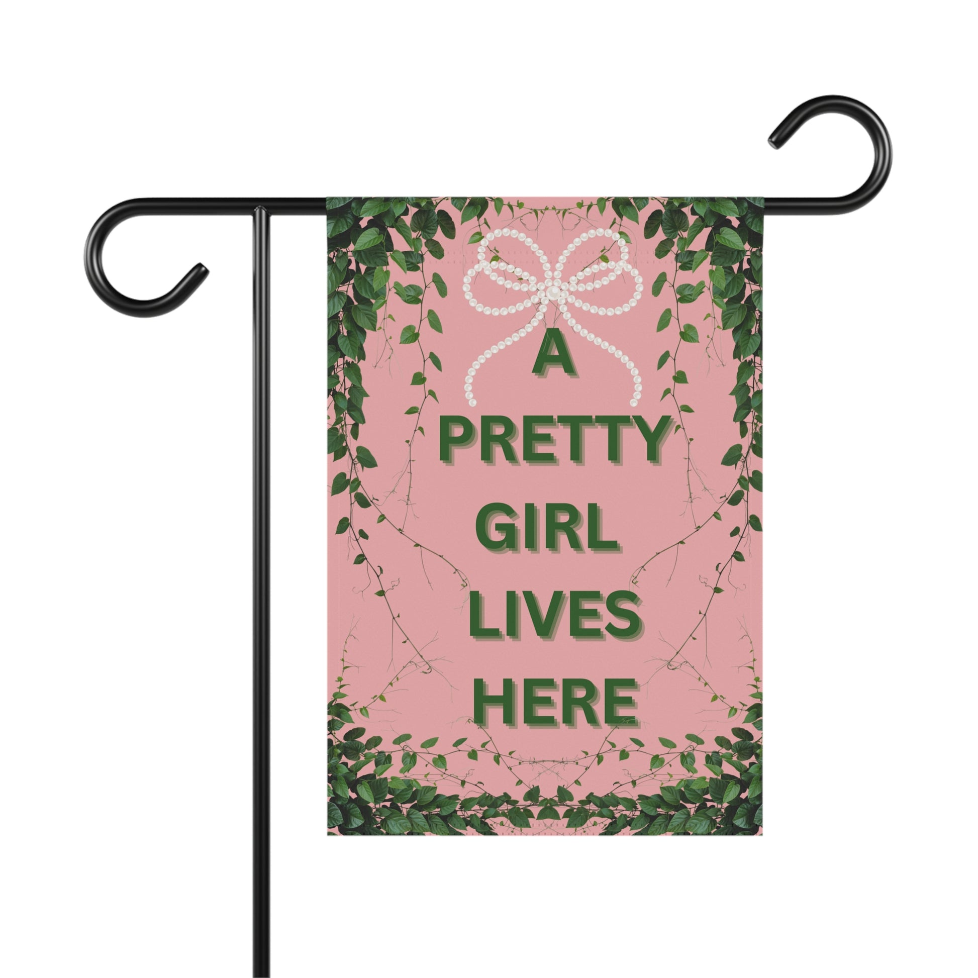 Transform your home or garden with a simple addition - the cute "A Pretty Girl Lives Here" garden flag.