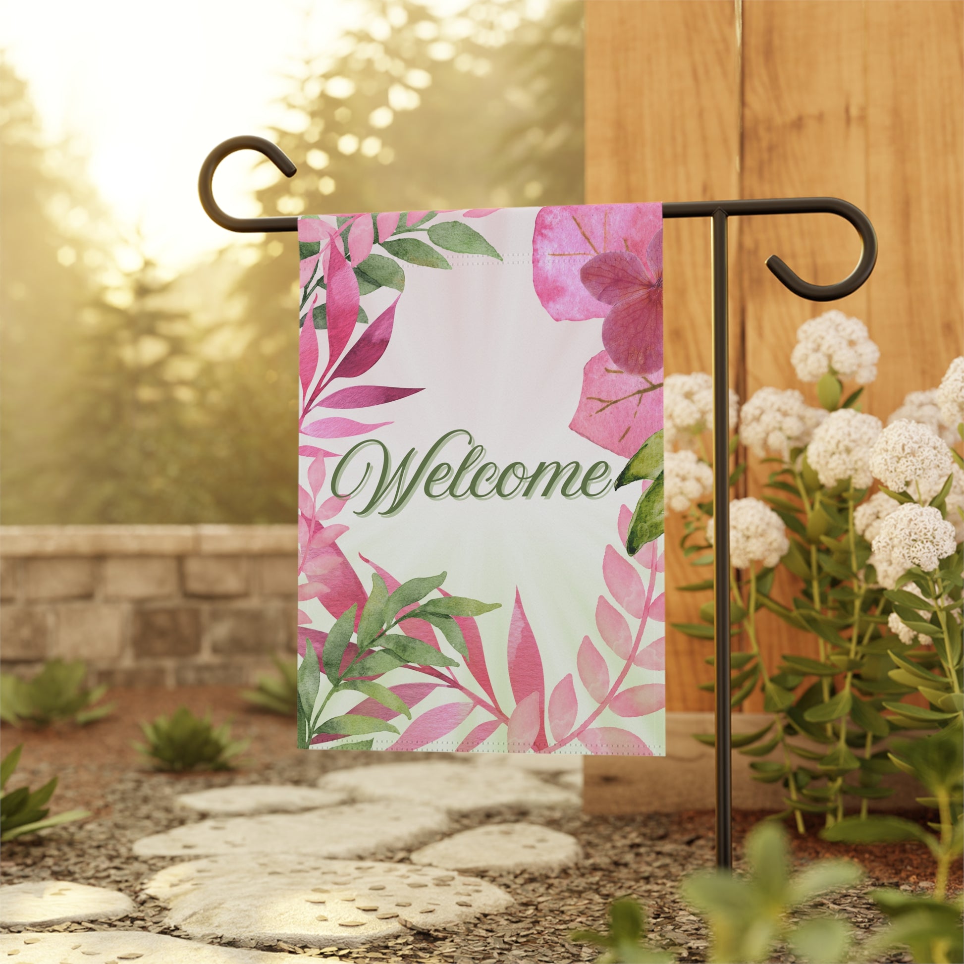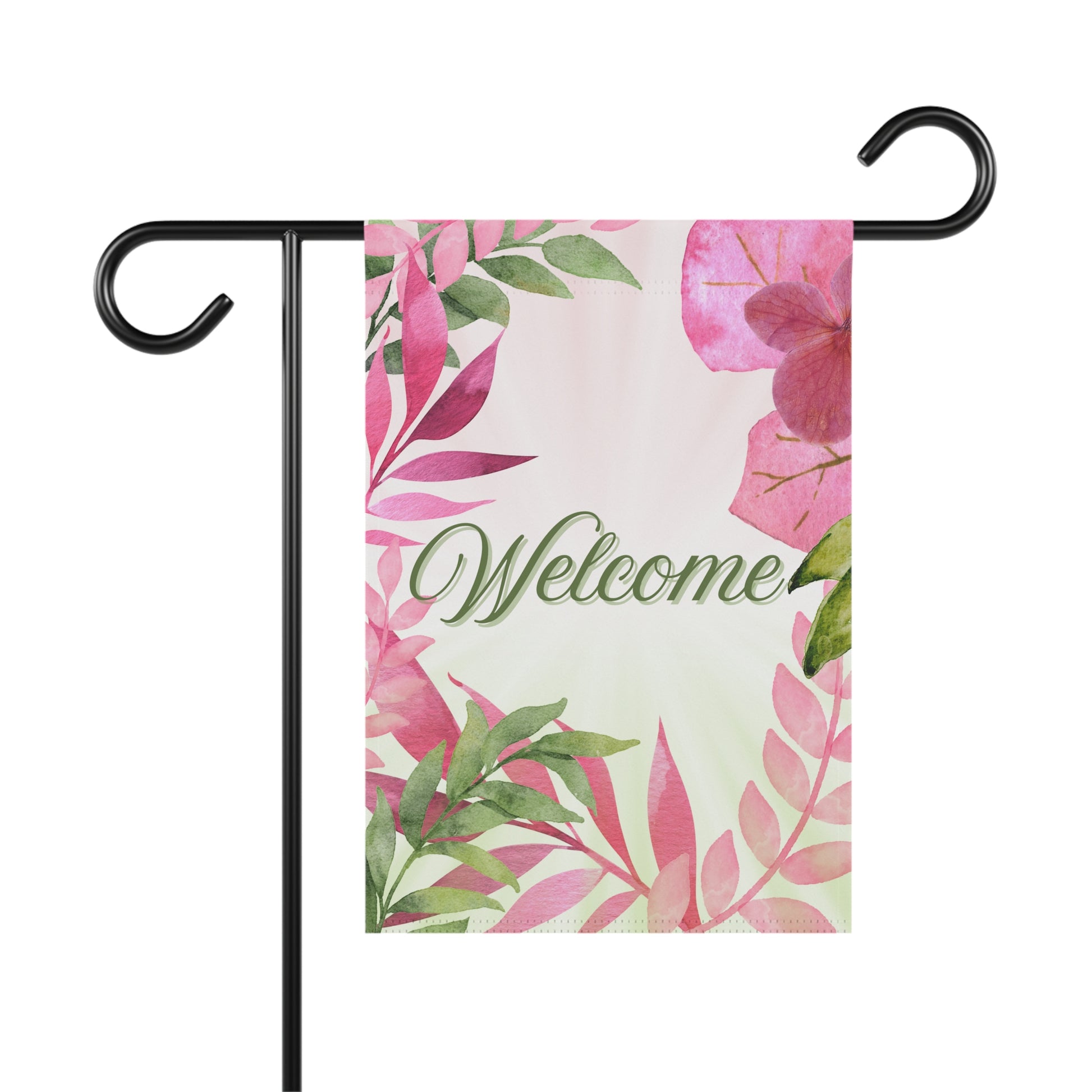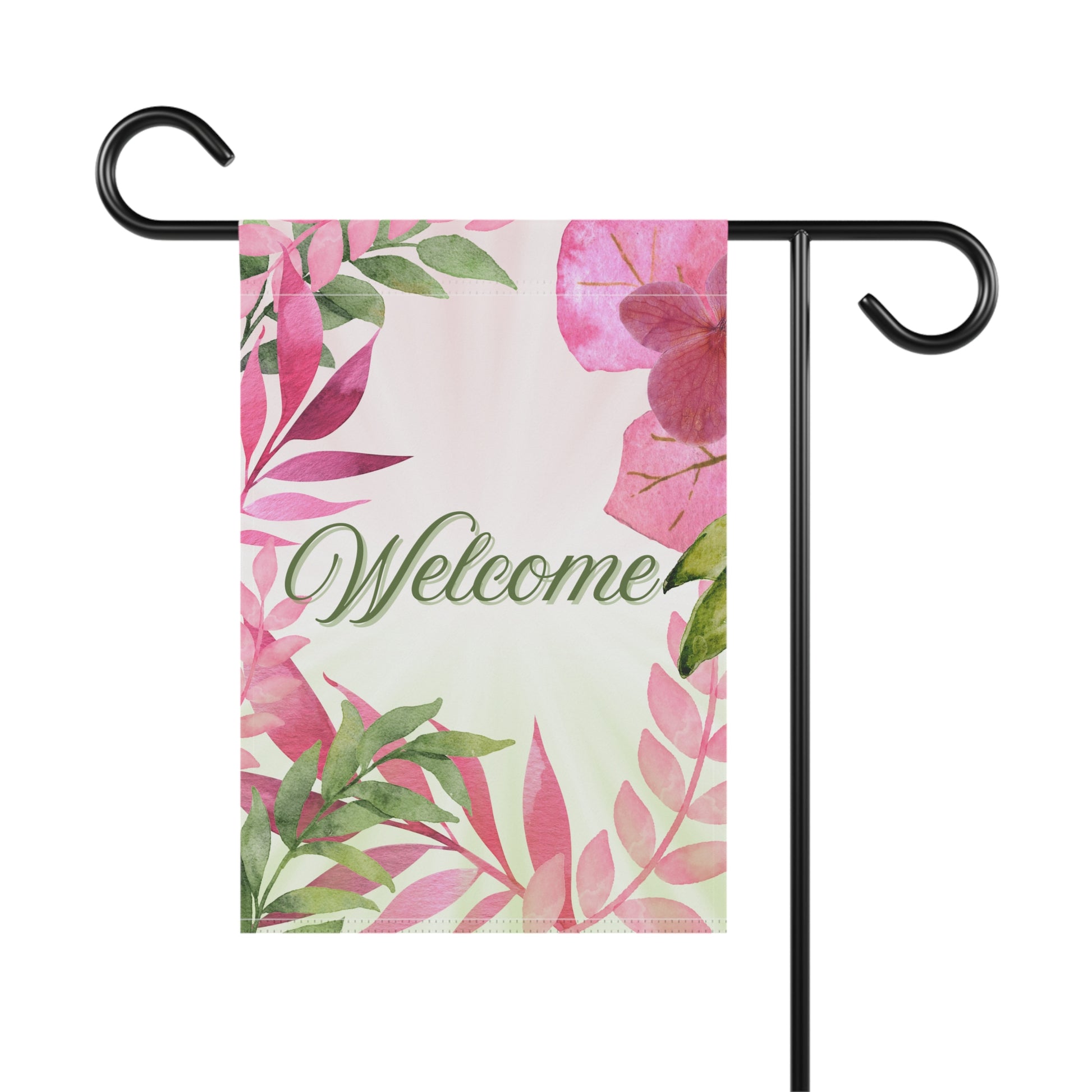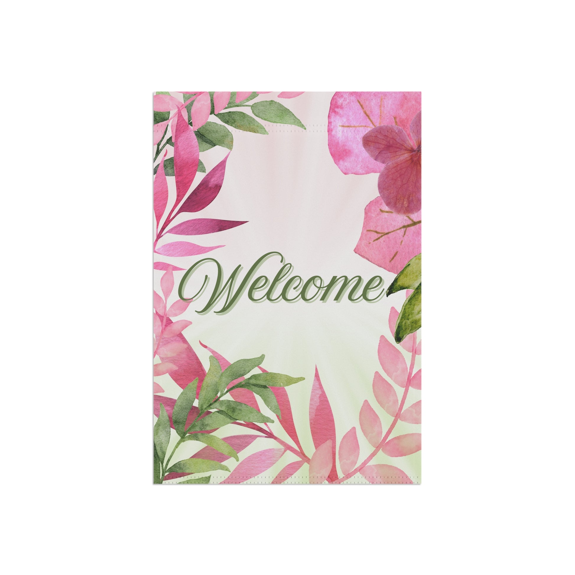 Welcome Pink & Green Plants Garden Flag